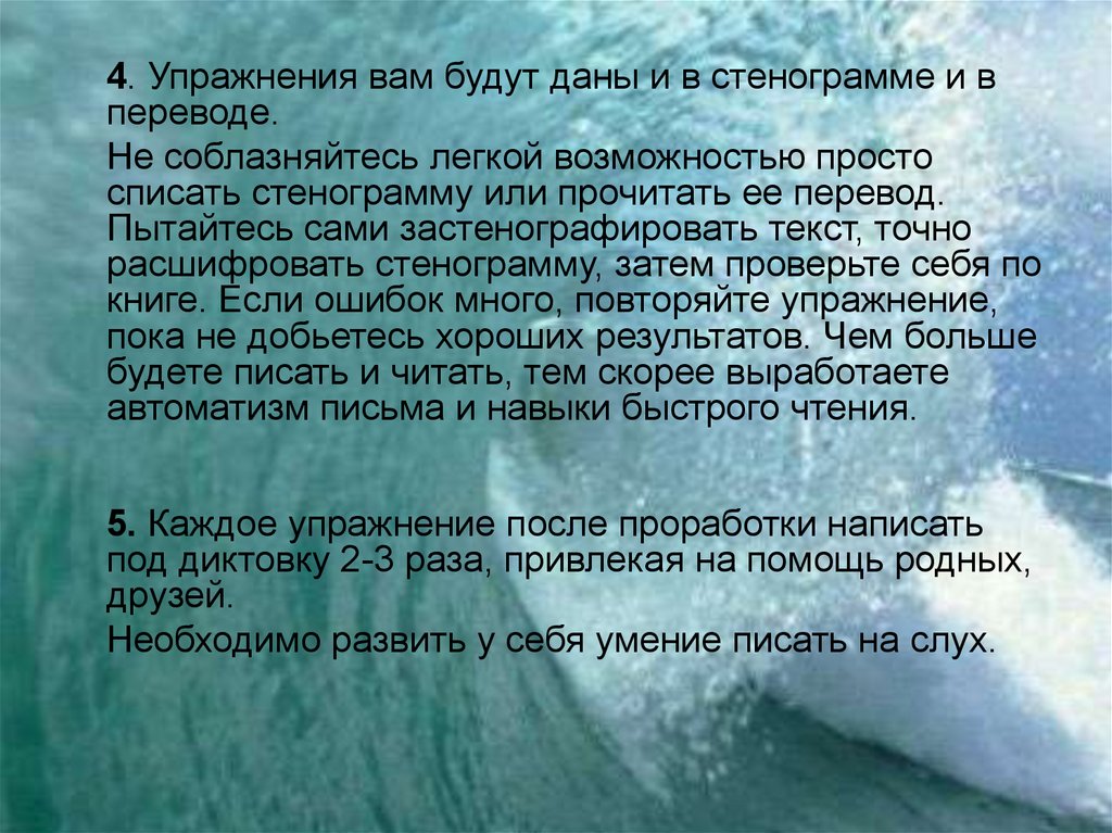 4. Упражнения вам будут даны и в стенограмме и впереводе.