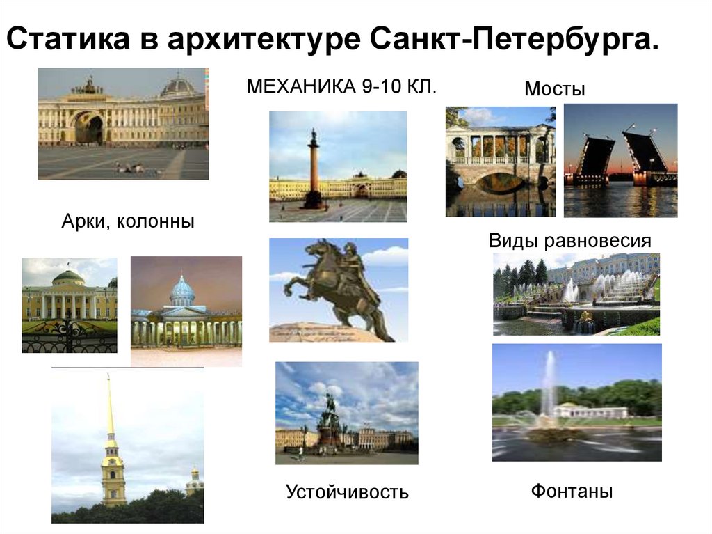 Статика в архитектуре Санкт-Петербурга.МЕХАНИКА 9-10 КЛ.