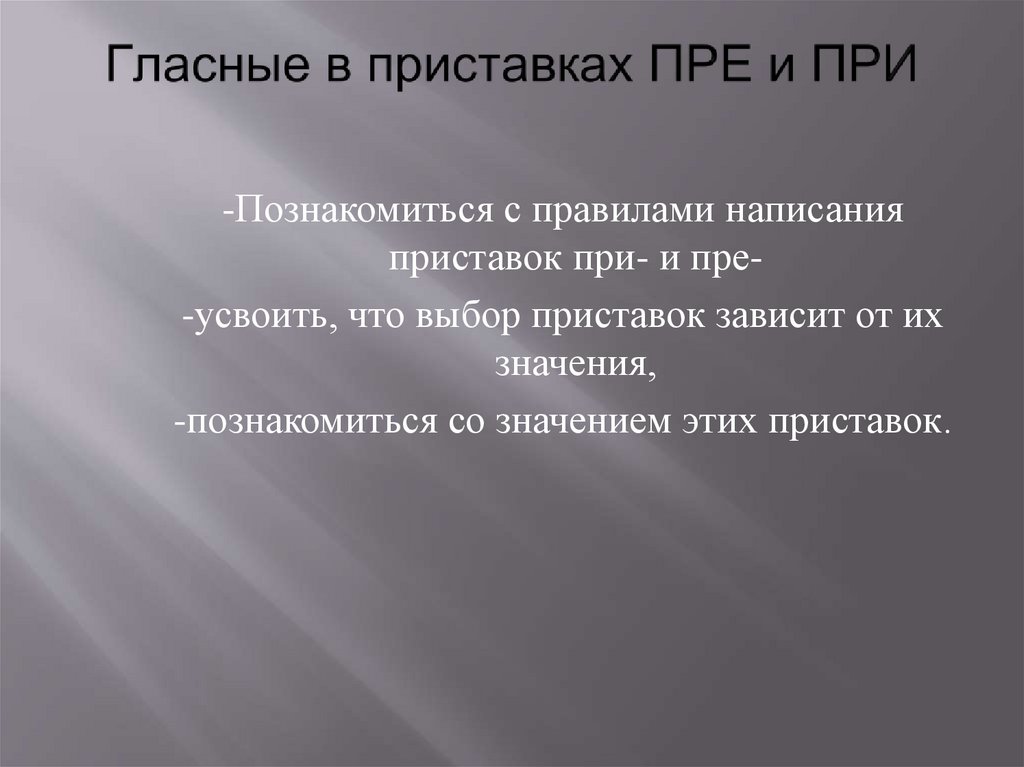 -Познакомиться с правилами написанияприставок при- и пре-усвоить, что выбор приставок зависит от их