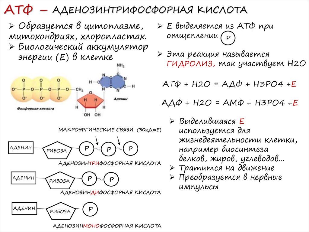 АТФ – АДЕНОЗИНТРИФОСФОРНАЯ КИСЛОТАЕ выделяется из АТФ при