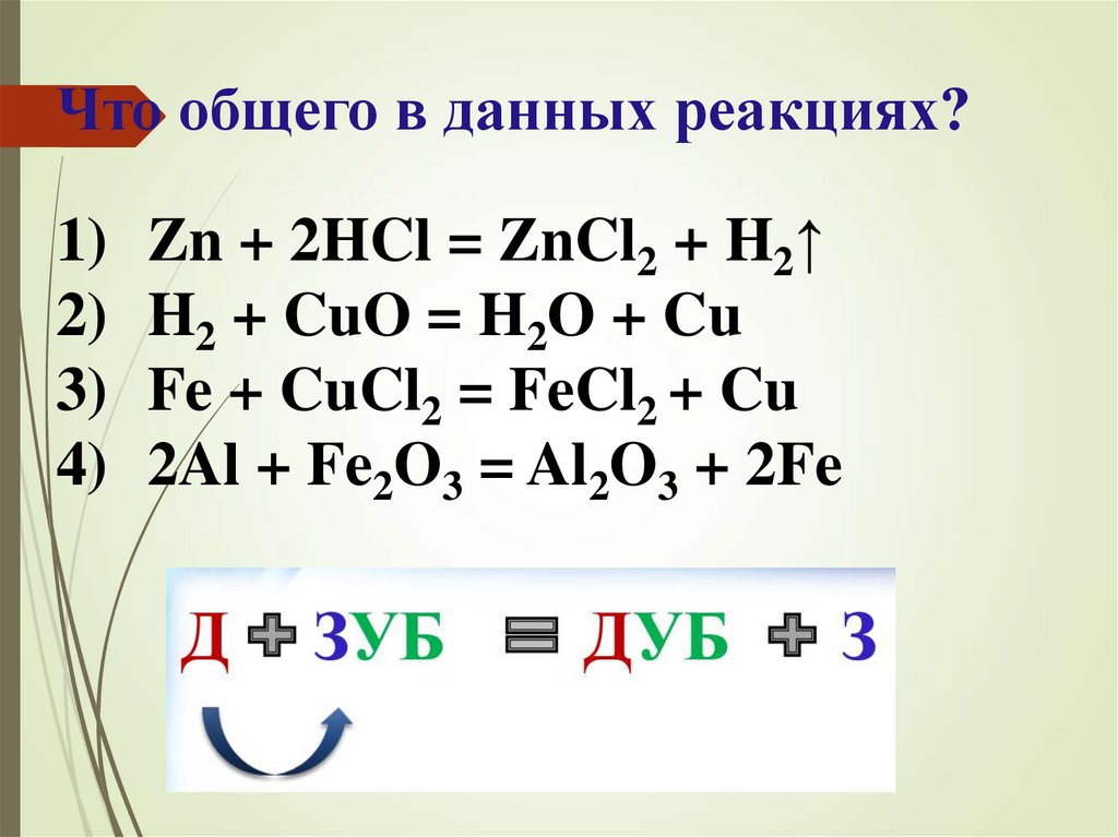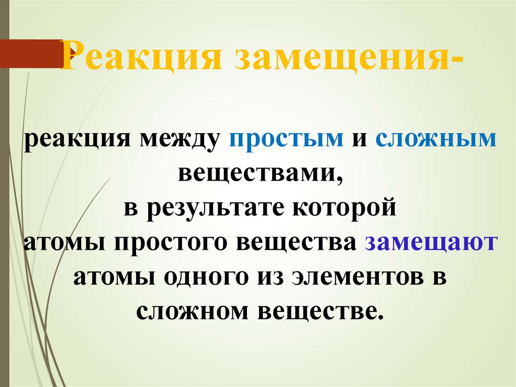 Реакция замещенияреакция между простым и сложнымвеществами,