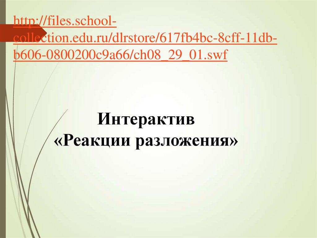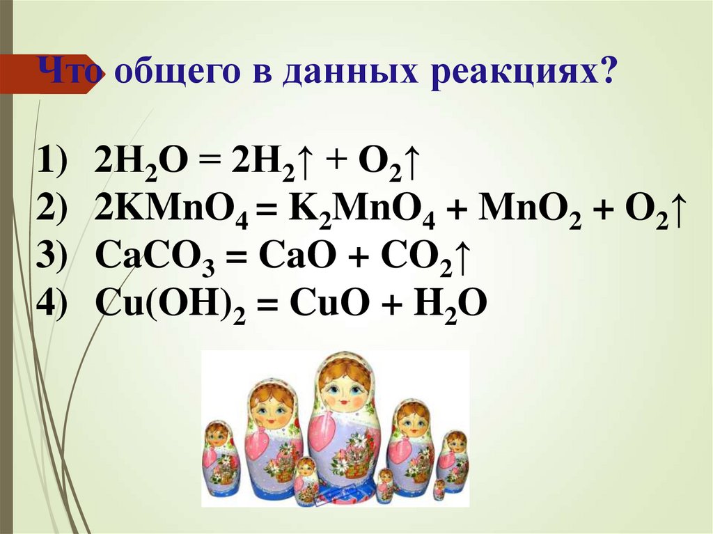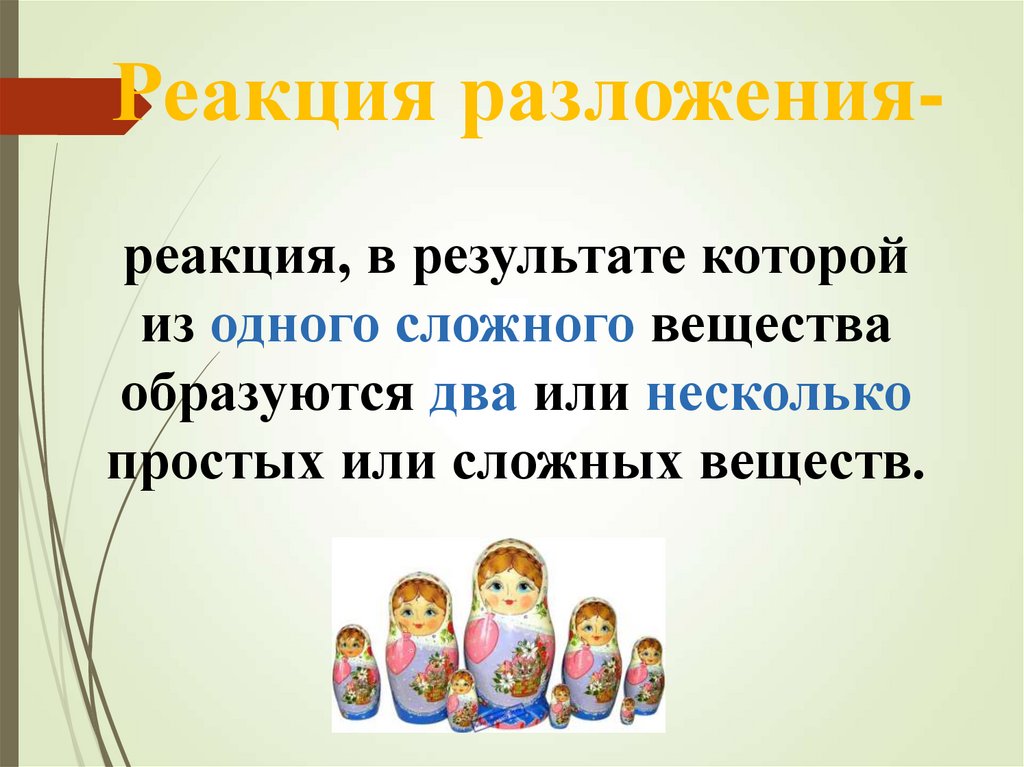 Реакция разложенияреакция, в результате которойиз одного сложного вещества