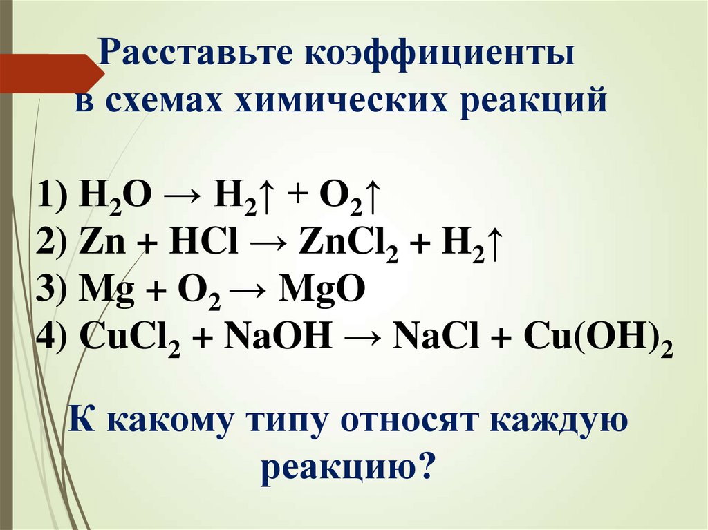 4) CuCl2 + NaOH → NaCl + Cu(OH)2