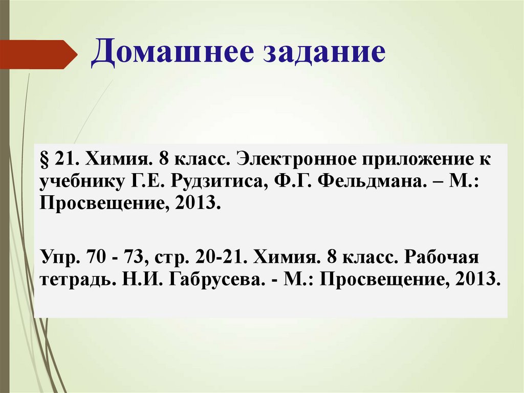 Домашнее задание§ 21. Химия. 8 класс. Электронное приложение к