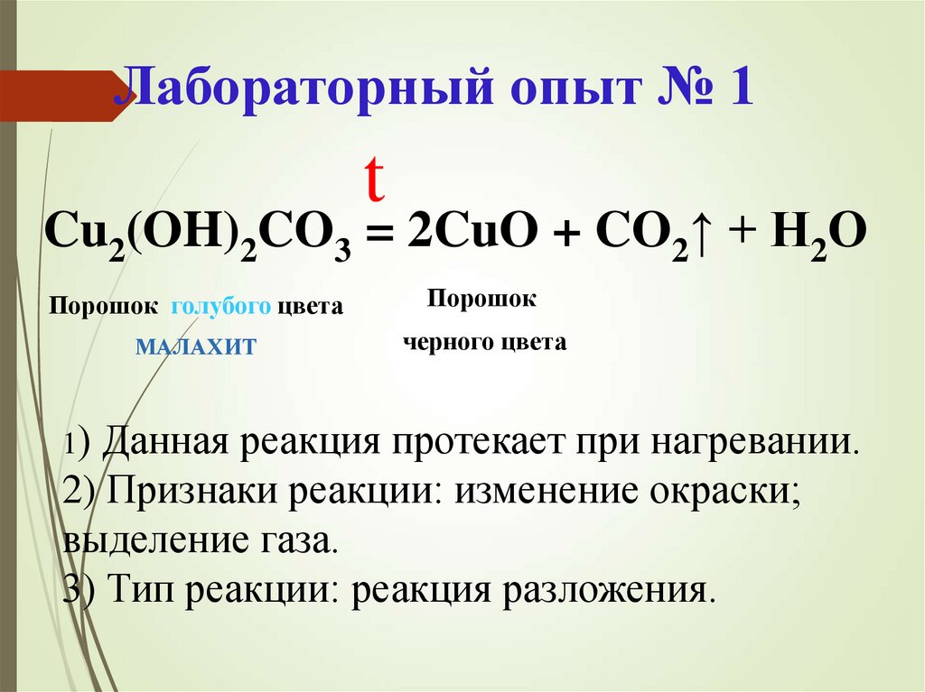 Cu2(OH)2CO3 = 2CuO + CO2↑ + H2O