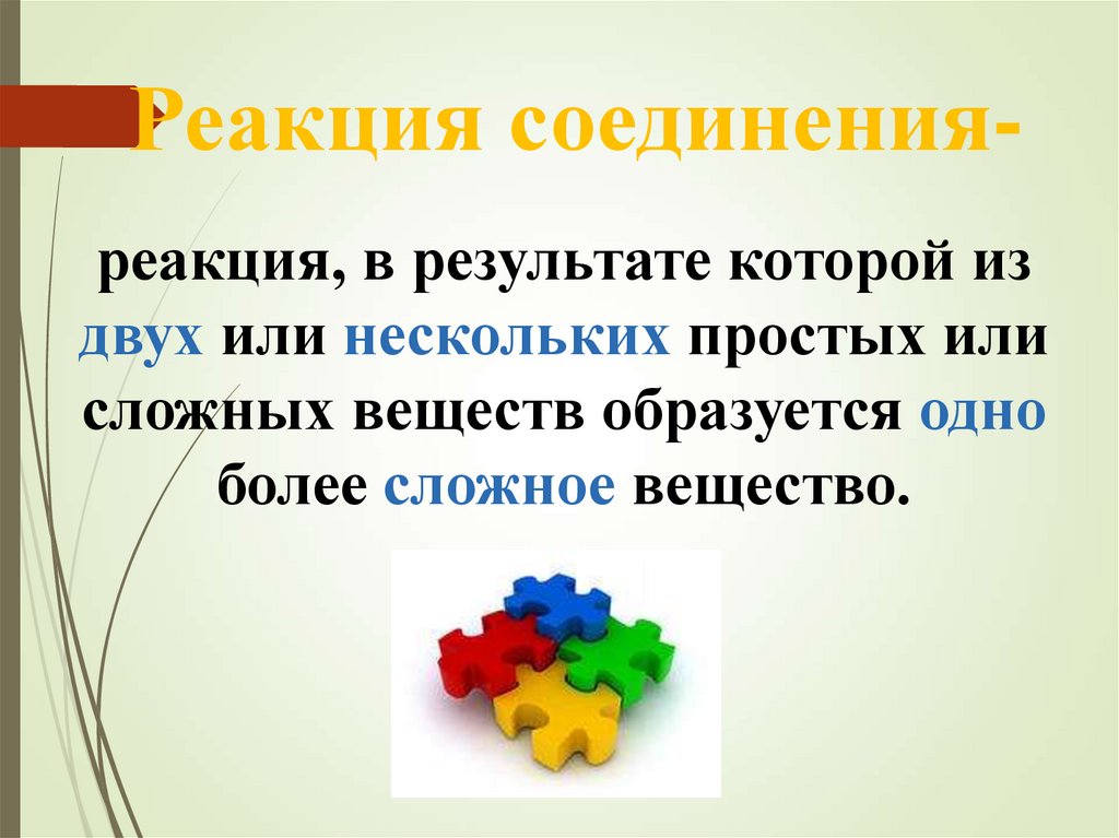 Реакция соединенияреакция, в результате которой издвух или нескольких простых или