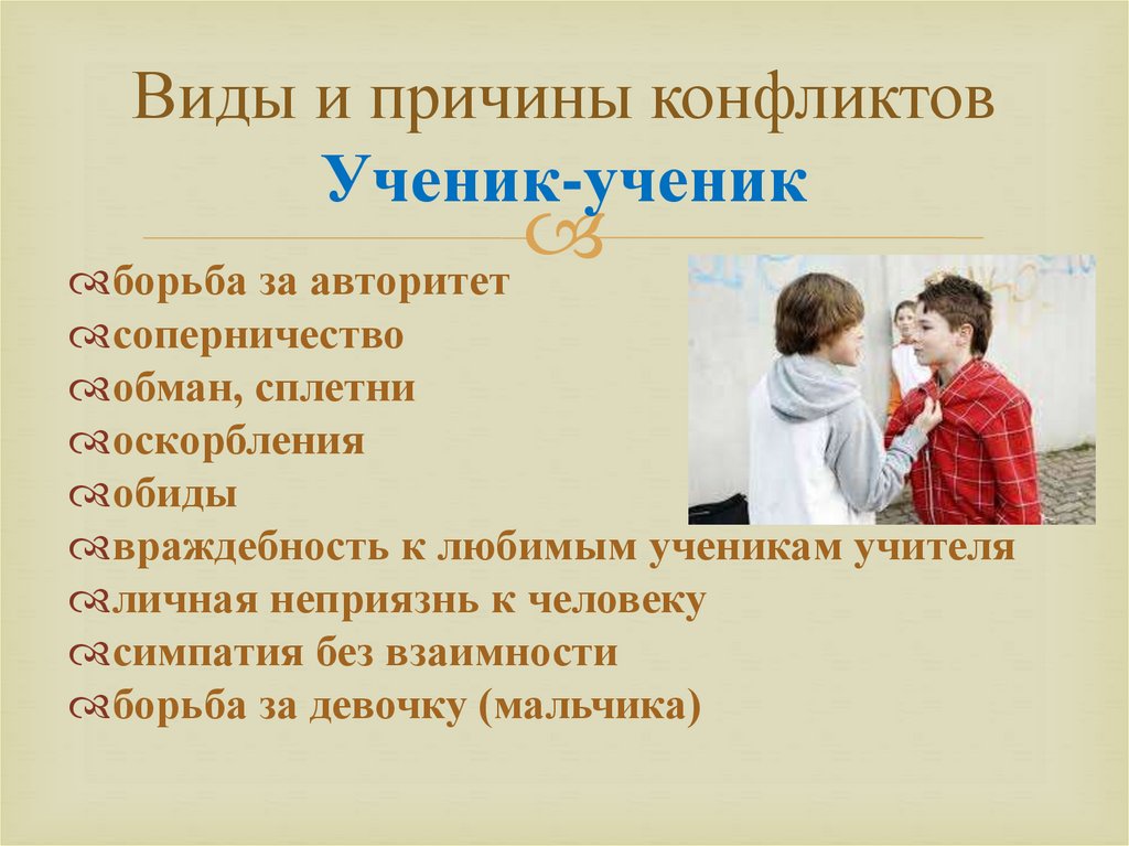 Ученик-учительКонфликт деятельности (успеваемость ученика);