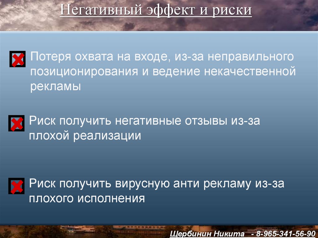 Негативный эффект и рискиПотеря охвата на входе, из-за неправильного