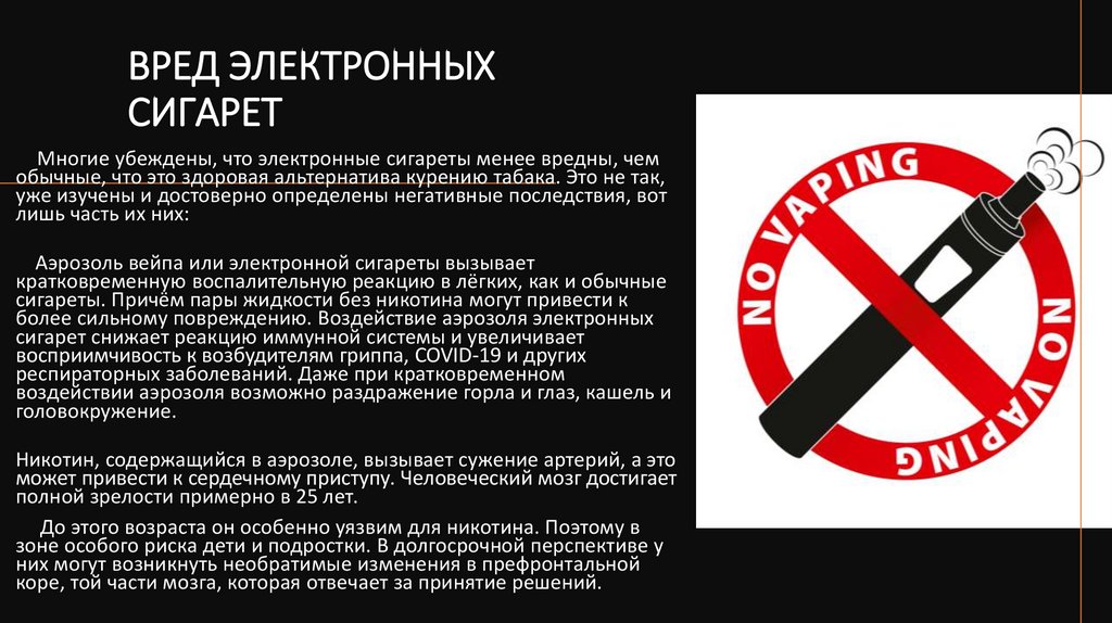 ВРЕД ЭЛЕКТРОННЫХСИГАРЕТ