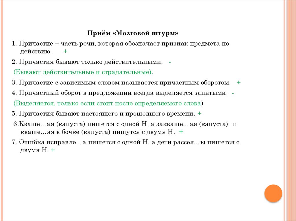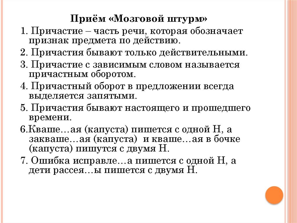 Приём «Мозговой штурм»1. Причастие – часть речи, которая обозначает