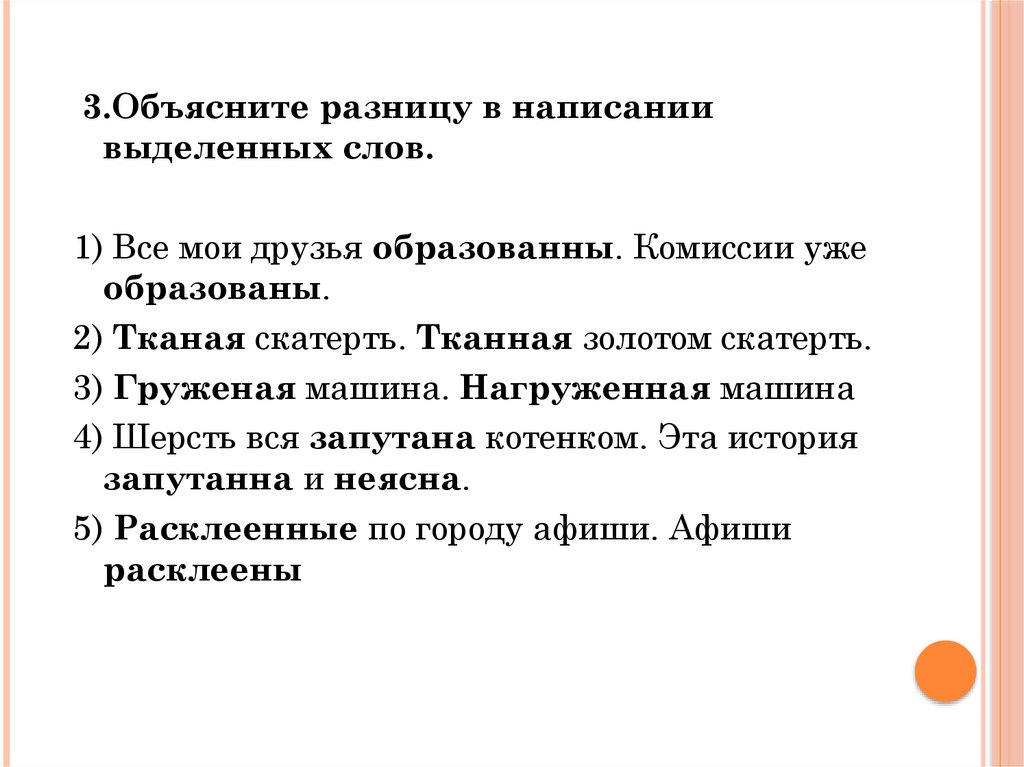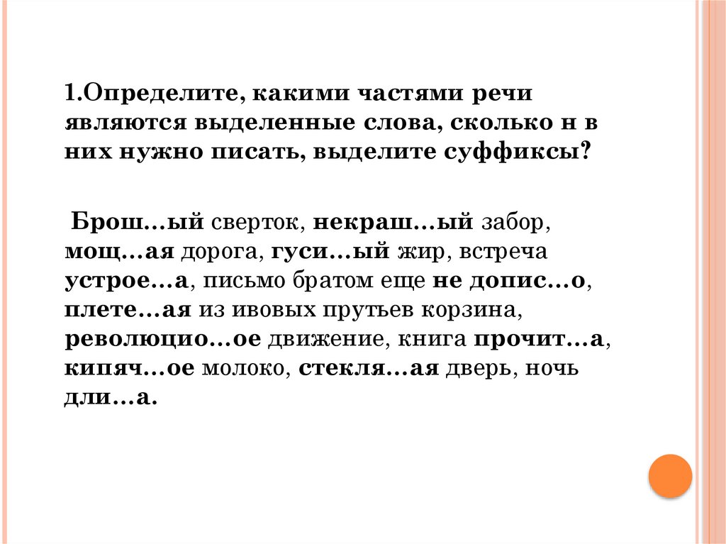 1.Определите, какими частями речиявляются выделенные слова, сколько н в