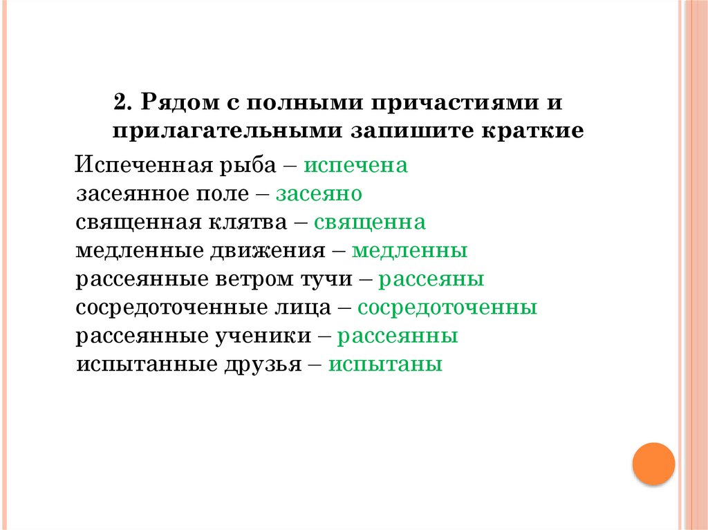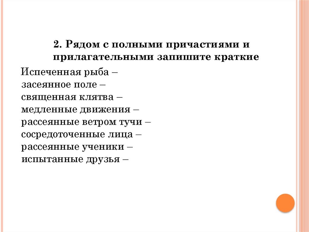 2. Рядом с полными причастиями иприлагательными запишите краткие