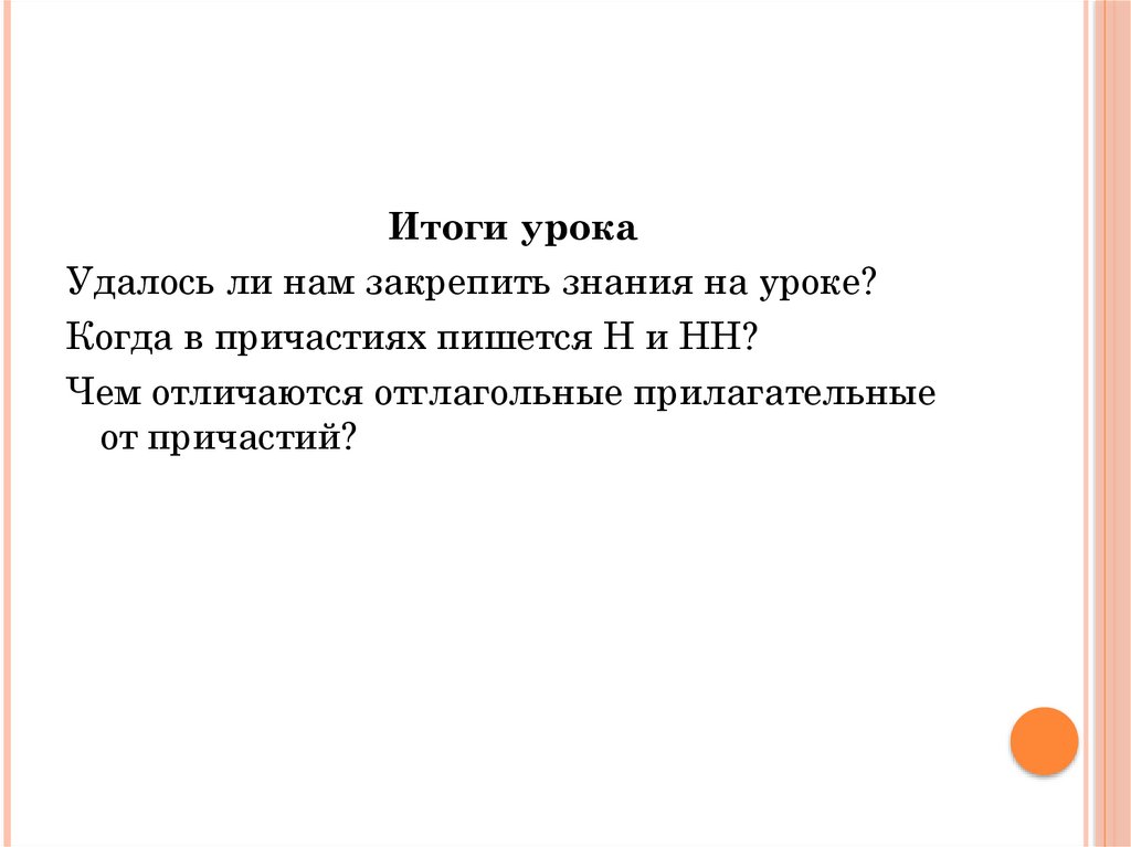 Итоги урокаУдалось ли нам закрепить знания на уроке?