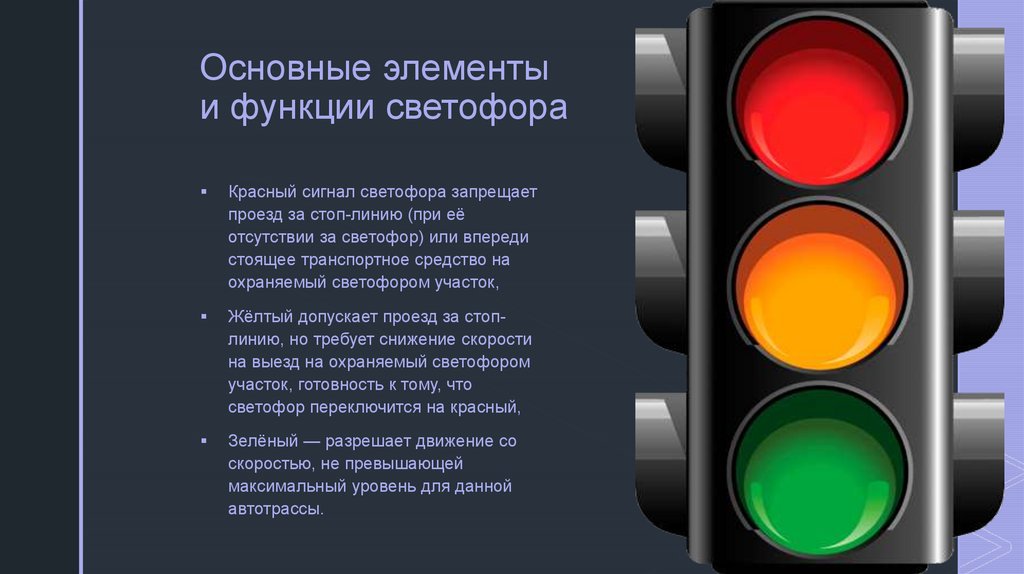 Жёлтый допускает проезд за стоплинию, но требует снижение скорости