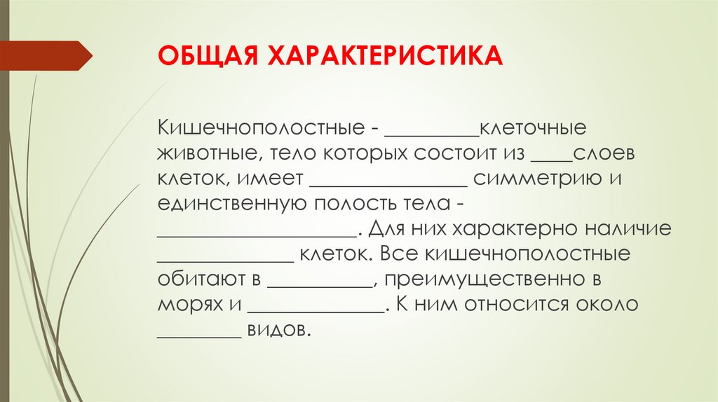 ОБЩАЯ ХАРАКТЕРИСТИКАКишечнополостные - _________клеточные