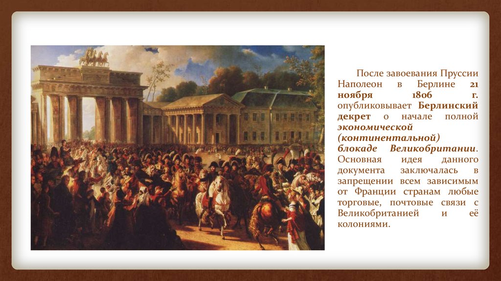 Последствия после начала континентальной блокадыдля Российской и Британской империй, а также