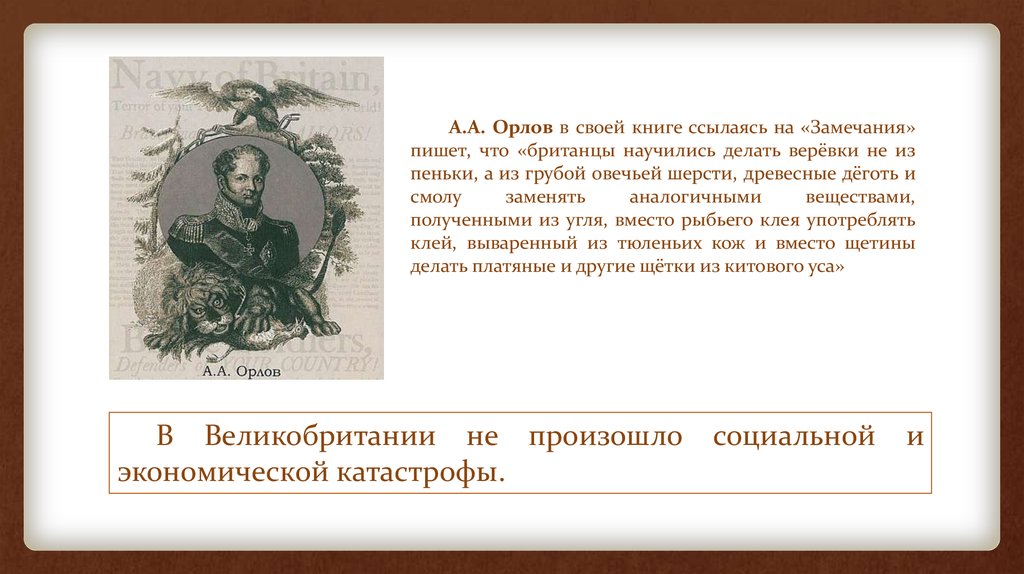 А.А. Орлов в своей книге ссылаясь на «Замечания»пишет, что «британцы научились делать верёвки не из