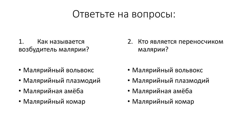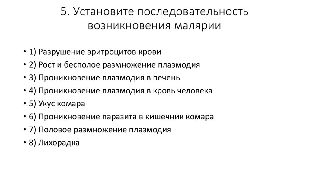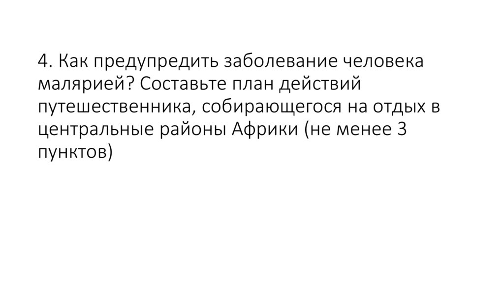 4. Как предупредить заболевание человекамалярией? Составьте план действий