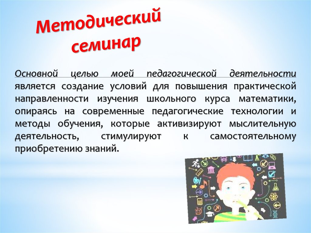 Основной целью моей педагогической деятельностиявляется создание условий для повышения практической