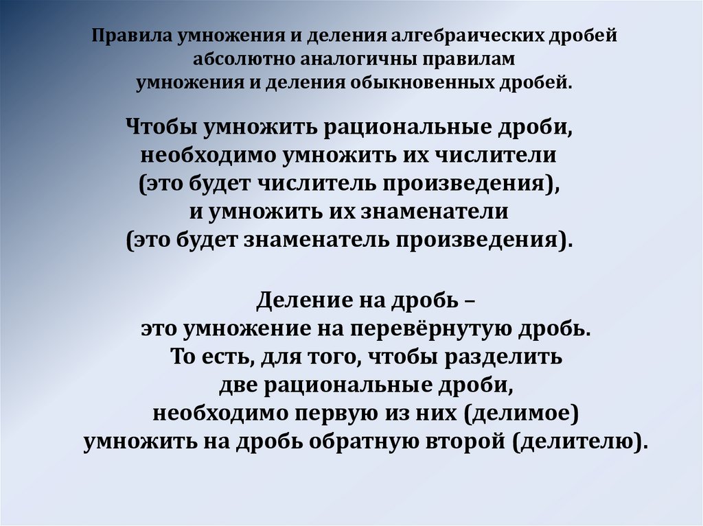 Умножение и деление рациональных дробей. Тождественные преобразования рациональных выражений
