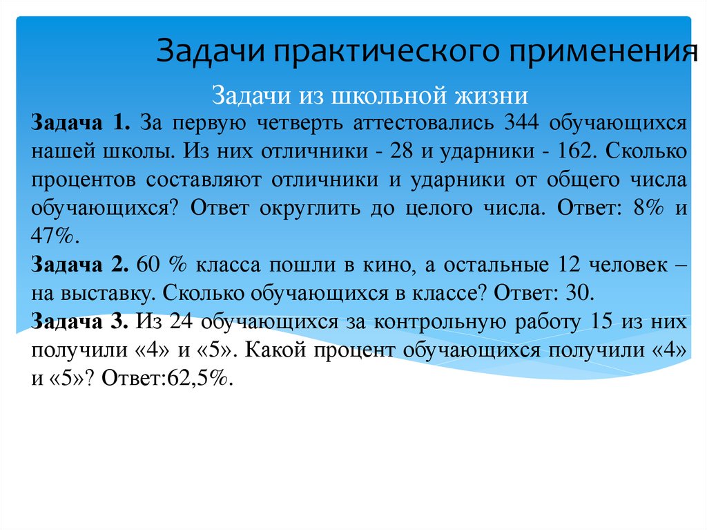 Задачи практического примененияЗадачи из школьной жизни