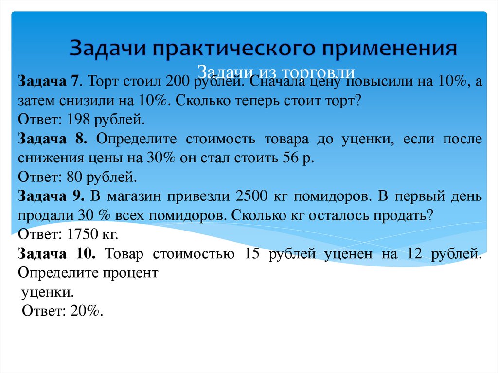 Задача 10. Товар стоимостью 15 рублей уценен на 12 рублей.