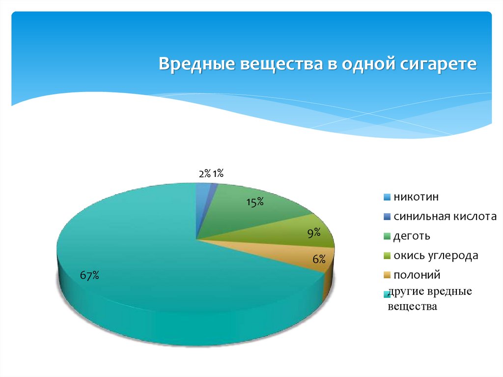 Вредные вещества в одной сигарете2% 1%