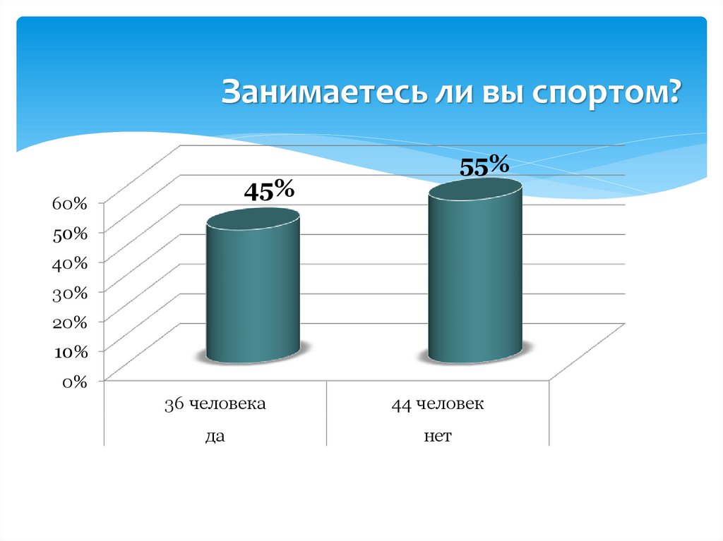 Занимаетесь ли вы спортом?55%