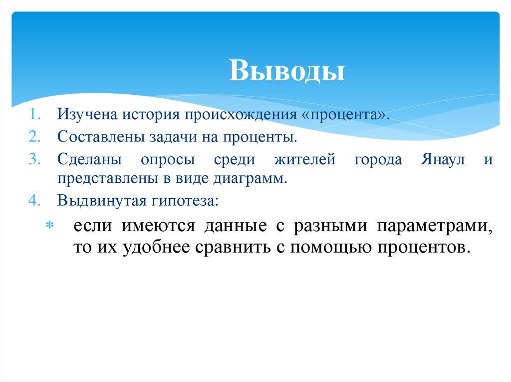 Выводы1. Изучена история происхождения «процента».