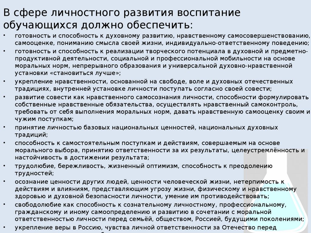 ответственностью личности перед семьёй, обществом, Россией, будущими поколениями;