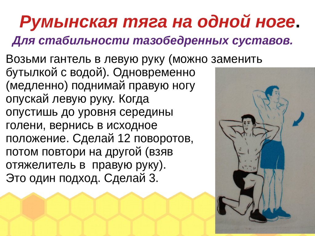 Румынская тяга на одной ноге.Для стабильности тазобедренных суставов.