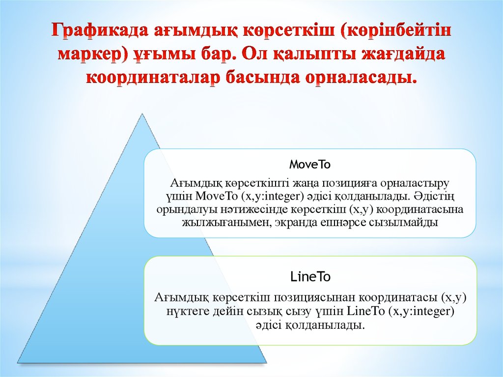 үшін MoveTo (x,y:integer) әдісі қолданылады. Әдістің