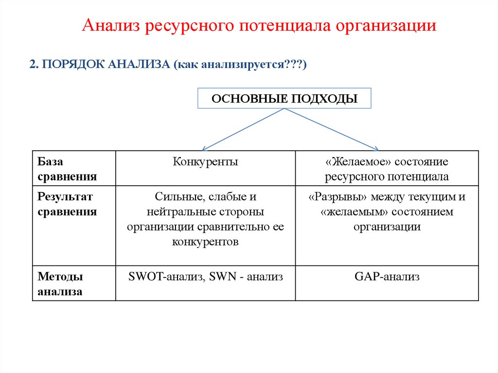 Анализ ресурсного потенциала организации2. ПОРЯДОК АНАЛИЗА (как анализируется???)