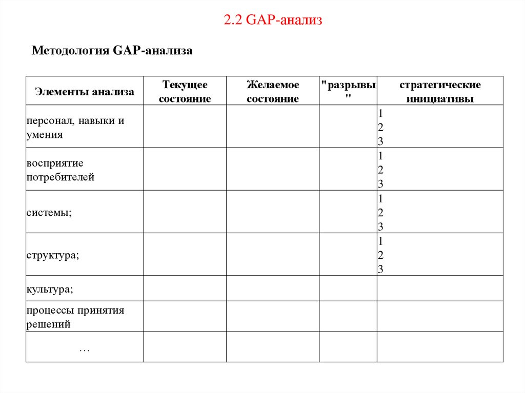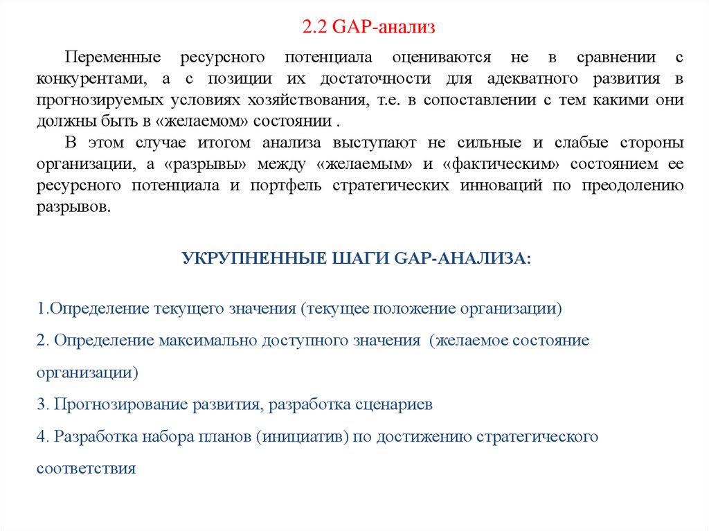 УКРУПНЕННЫЕ ШАГИ GAP-АНАЛИЗА: