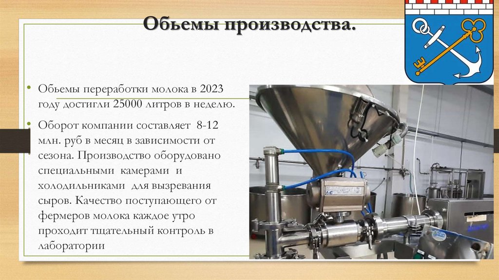 Обьемы производства.• Обьемы переработки молока в 2023
