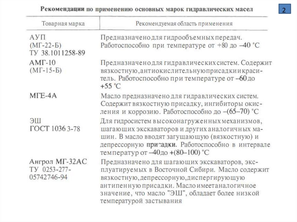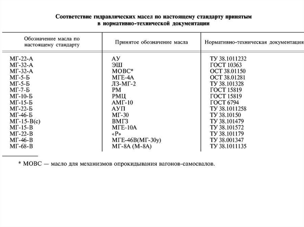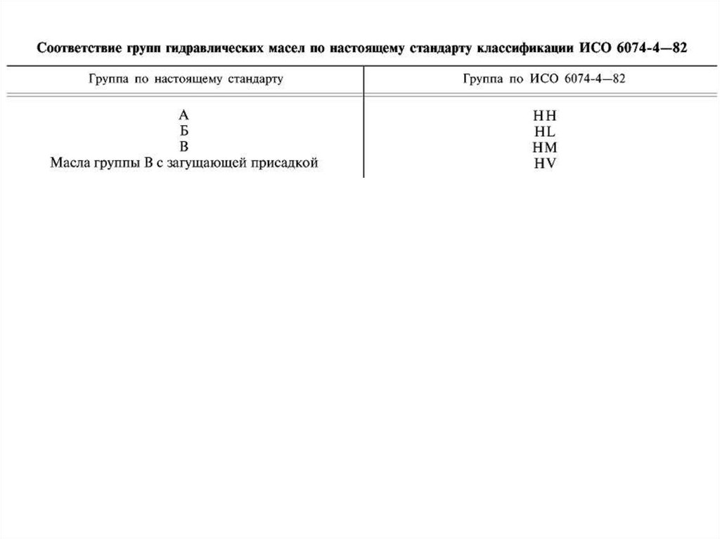 Классы гидравлических масел в зависимости от кинематической вязкости при