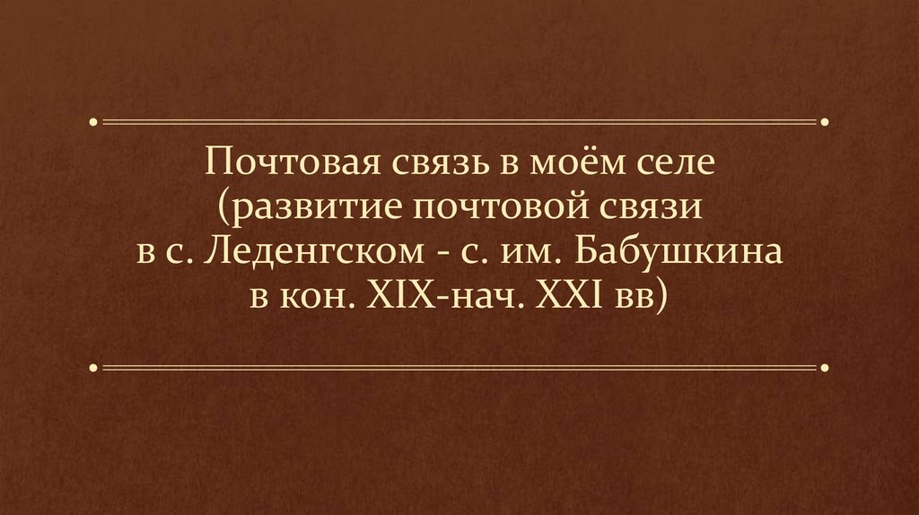 1. Почтовая связь в моём селе (развитие почтовой связи в с. Леденгском - с. им. Бабушкина в кон. XIX-нач. XXI вв)