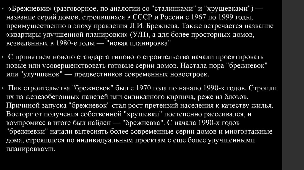«Брежневки» (разговорное, по аналогии со "сталинками" и "хрущевками") —