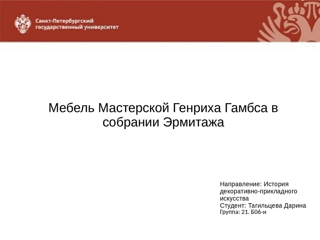 Мебель Мастерской Генриха Гамбса всобрании Эрмитажа