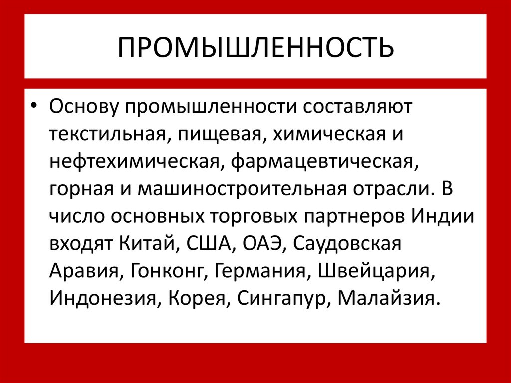 ПРОМЫШЛЕННОСТЬ• Основу промышленности составляют