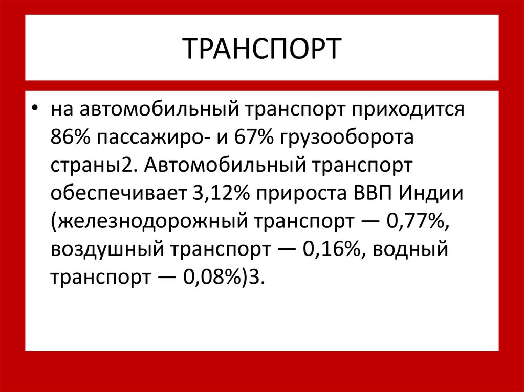 ТРАНСПОРТ• на автомобильный транспорт приходится
