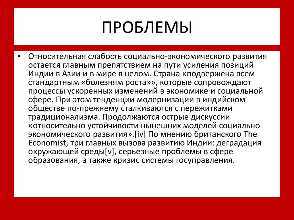 ПРОБЛЕМЫ• Относительная слабость социально-экономического развития