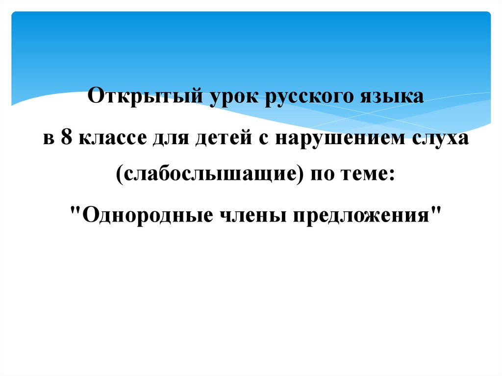 Однородные члены предложения. Открытый урок русского языка в 8 классе для детей с нарушением слуха