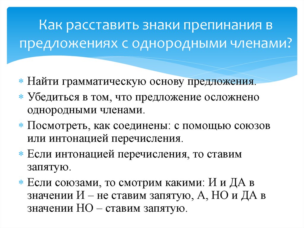 Как расставить знаки препинания впредложениях с однородными членами?