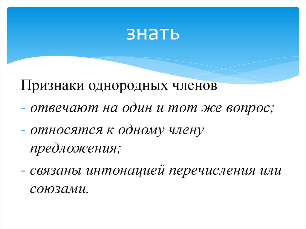 знатьПризнаки однородных членов