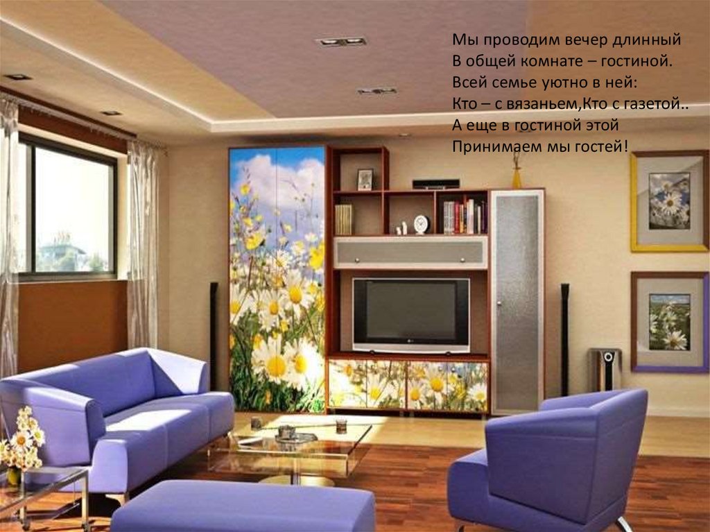 Мы проводим вечер длинныйВ общей комнате – гостиной.