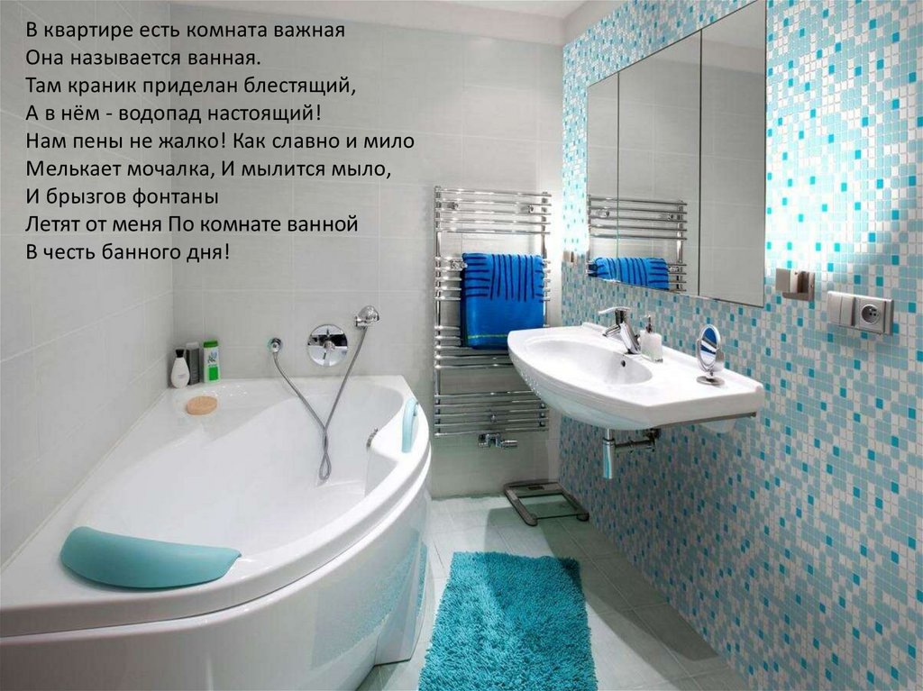 В квартире есть комната важнаяОна называется ванная.