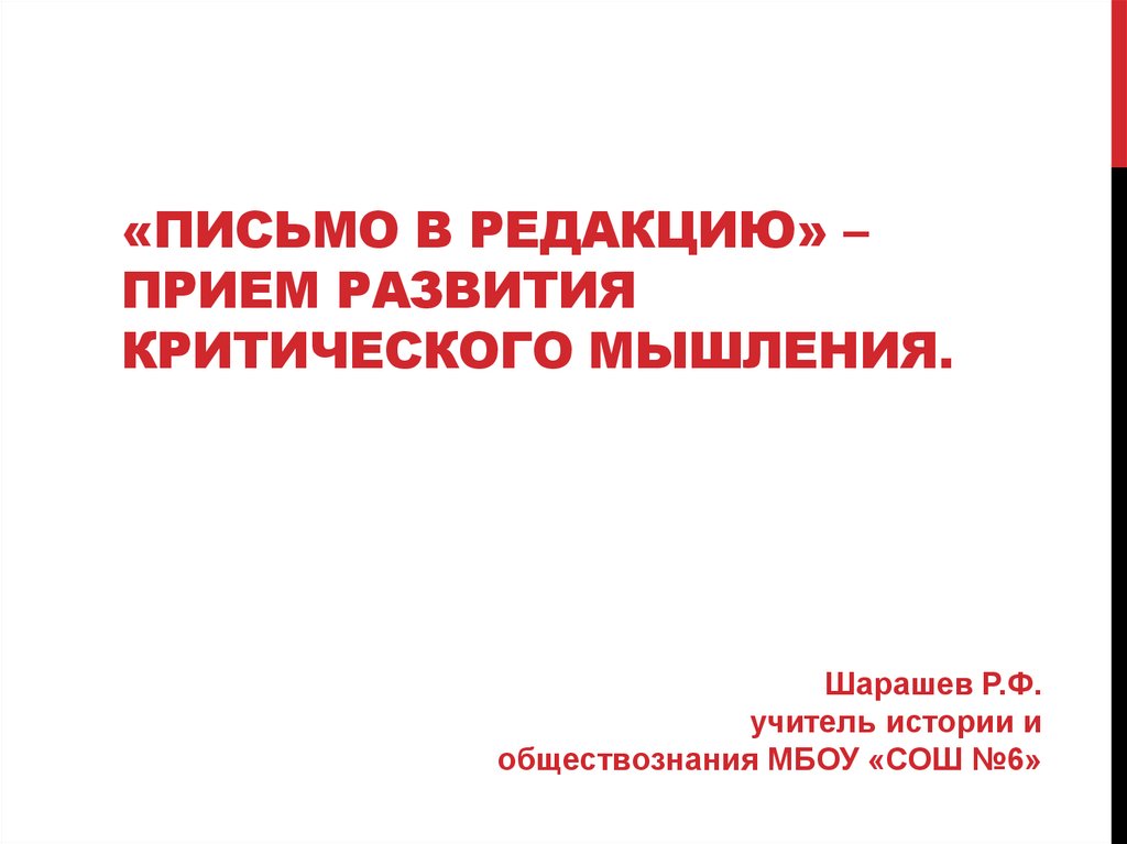 «ПИСЬМО В РЕДАКЦИЮ» –ПРИЕМ РАЗВИТИЯ