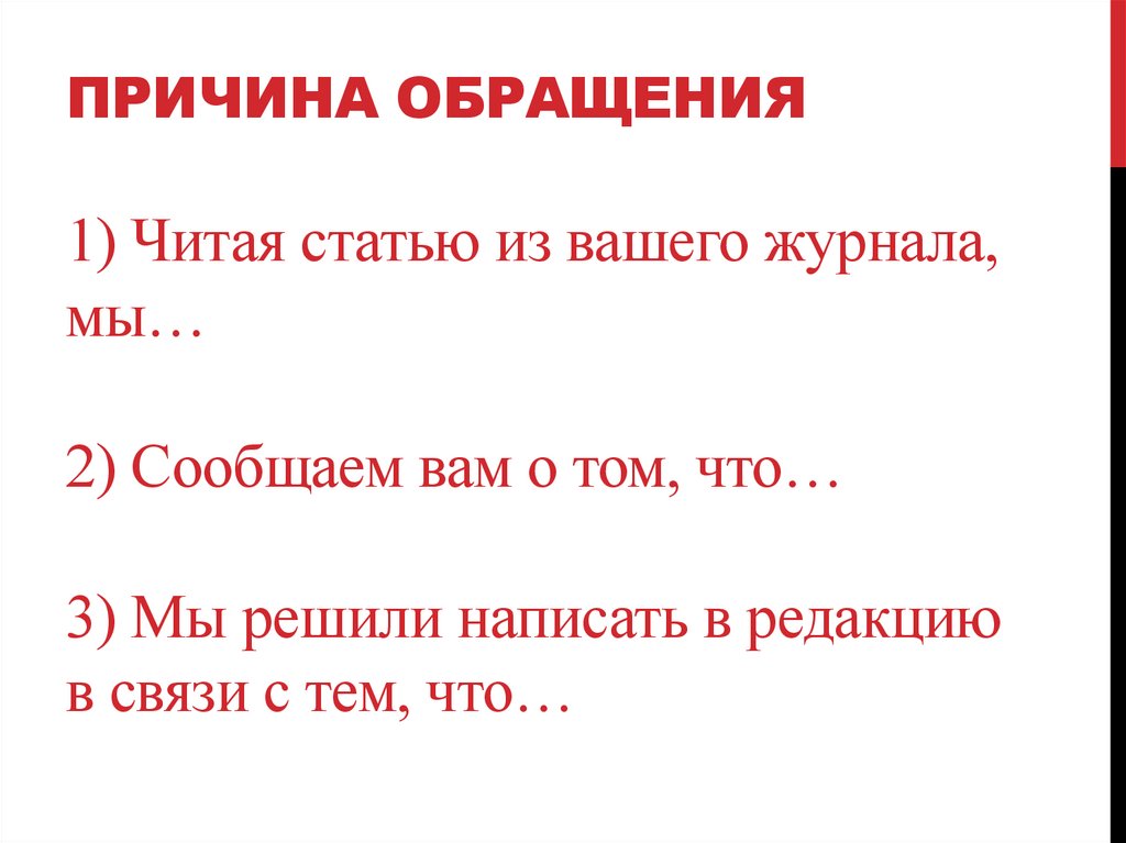 ПРИЧИНА ОБРАЩЕНИЯ1) Читая статью из вашего журнала,