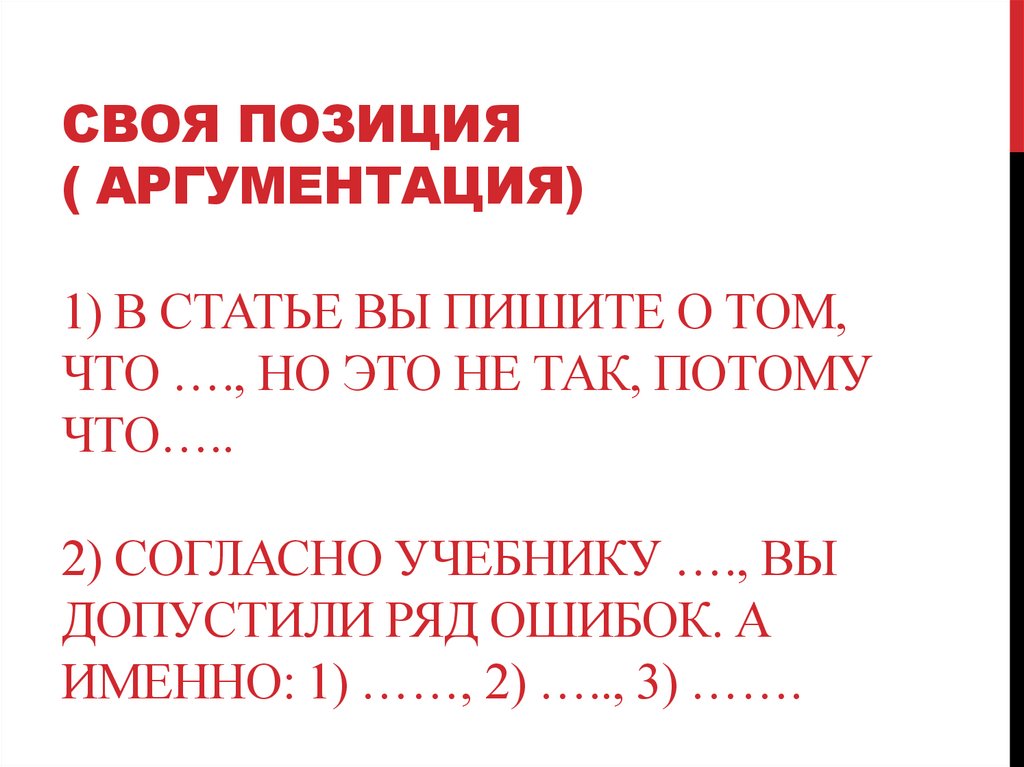 СВОЯ ПОЗИЦИЯ( АРГУМЕНТАЦИЯ)